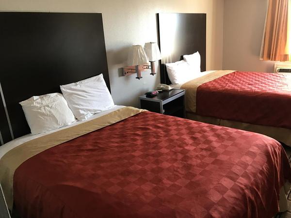 Non smoking room with two queen beds. Amenities include: private bathroom, free Wi-Fi access, work desk, air conditioning, iron, heating, hairdryer, cable with flat screen TV, refrigerator, microwave and alarm clock.